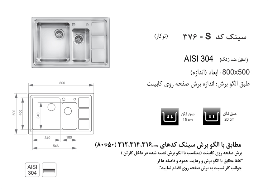 | جنس سینک | استیل معمولی |