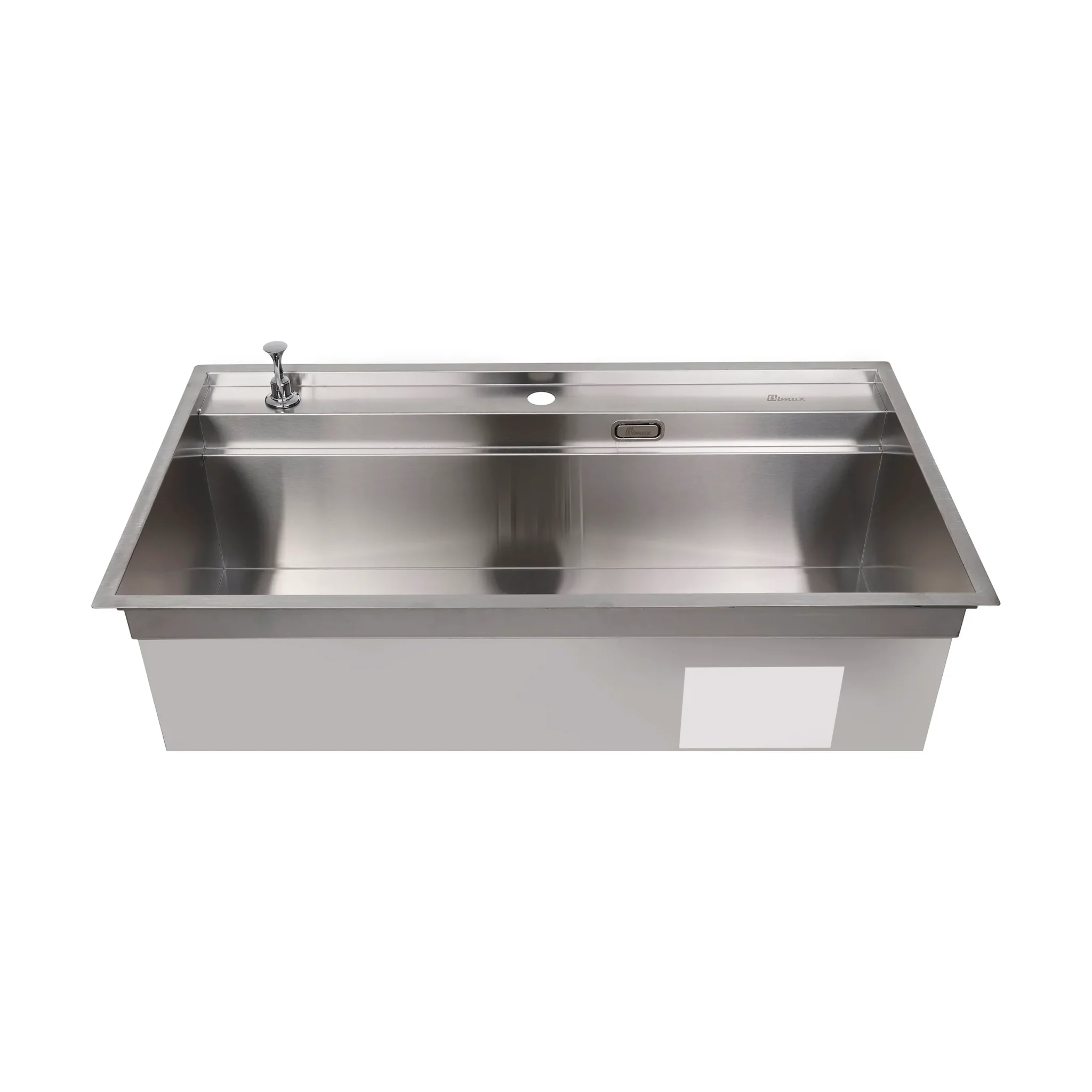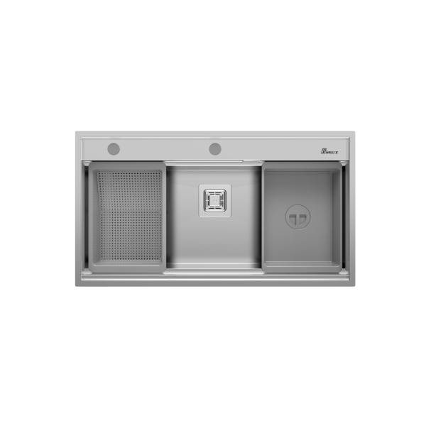 | ابعاد برش سینک (طول * عرض) سایر امکانات سینک : | ۴۸۴ * ۱۰۲۴ میلیمتر تخته گوشت چوبی + قابلیت نصب فلش مونت + سیفون مربعی + لگن متحرک +آبچکان رولی + جا مایع + میوه شوی _ دارای عمق 25 سانتی متری لگن + ست کامل سیفون |