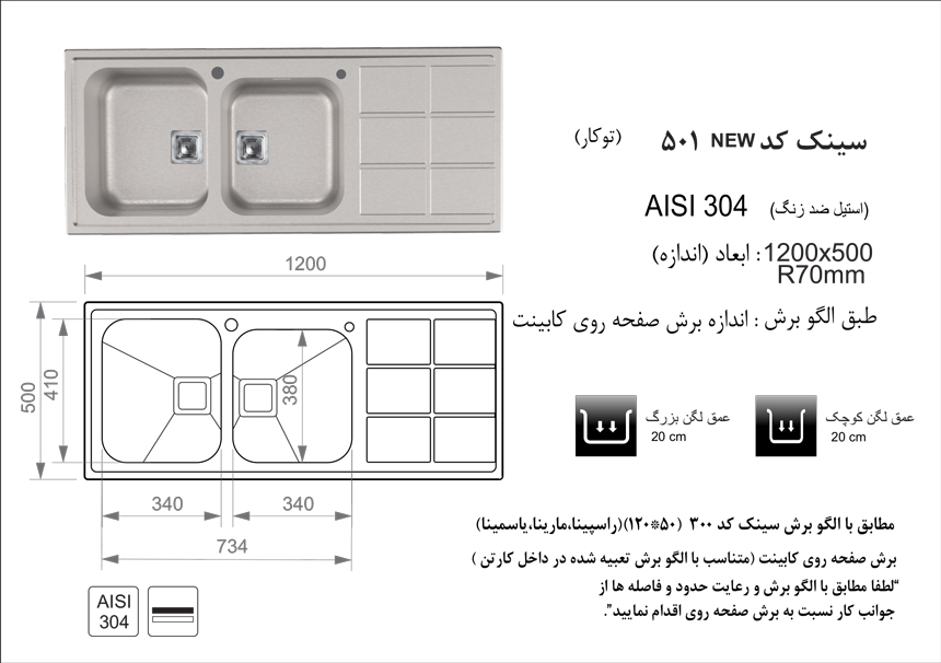 سینک استیل توکار اخوان کد 501 با طراحی مدرن و جنس استیل ضد زنگ، زیبایی و دوام را به آشپزخانه شما هدیه می‌دهد. با قدرت ضد خش و لکه‌گریزی بالا، تمیزی راحت و جلوه‌ای براق را تجربه کنید. انتخابی ایده‌آل برای تبدیل آشپزخانه به فضایی شیک و کارآمد. همین حالا خرید کنید و تفاوت را احساس کنید!
