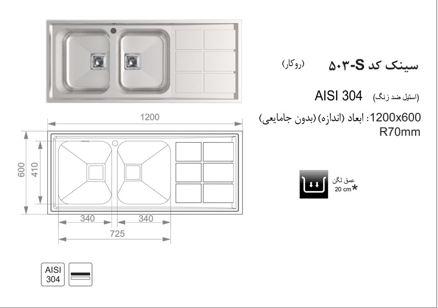 سینک استیل روکار اخوان کد 503s